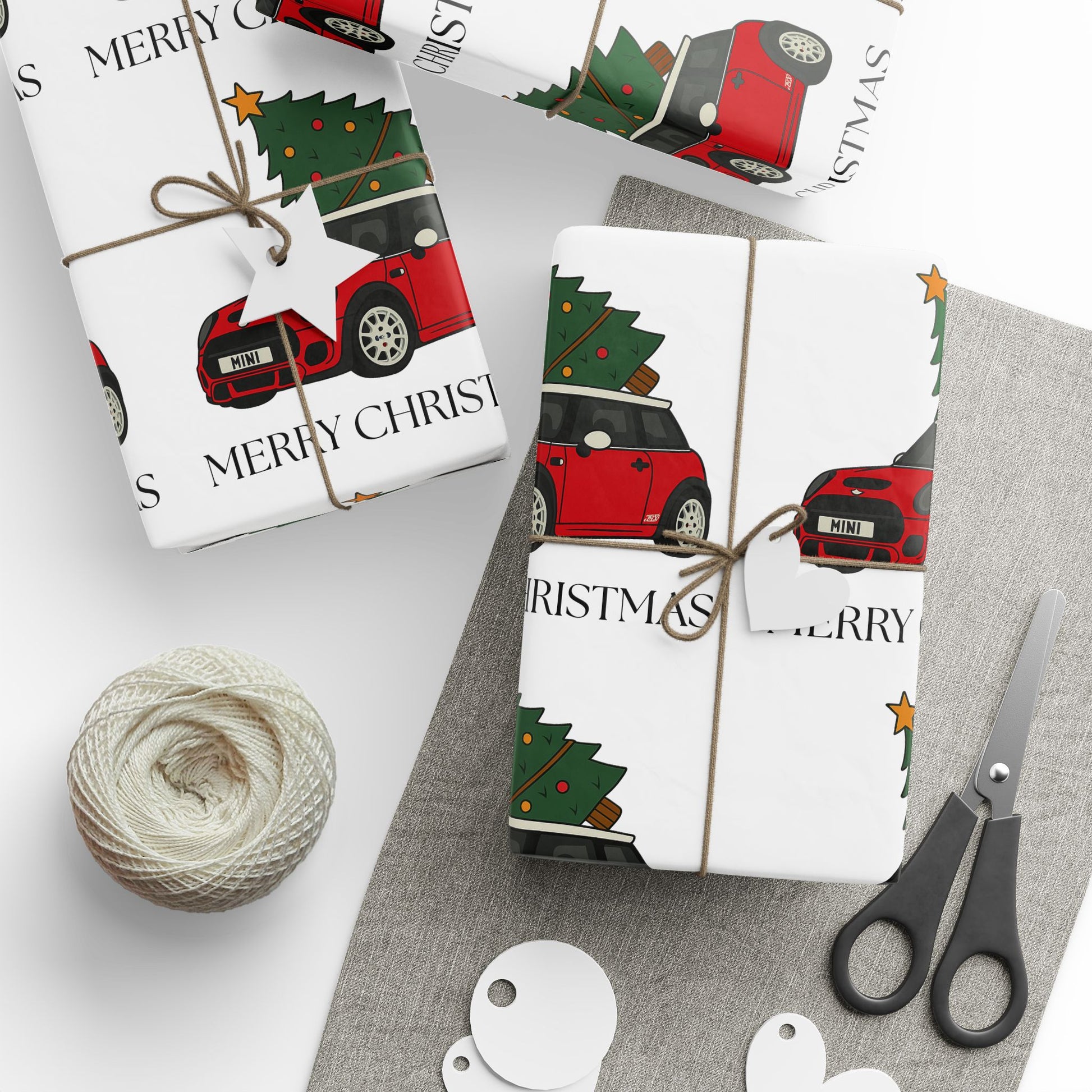 Mini Cooper Christmas Tree Wrapping Paper Roll — Festive Holiday Gift Wrap